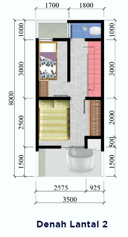 Tipe Kemuning dengan perbandingan luas bangunan dan luas lahan sebesar 40/32 ini terdiri dari 2 lantai dan 2 kamar tidur. Dengan harga yang sangat ekonomis seperti harga hunian 1 lantai, mulai dari 400 jutaan